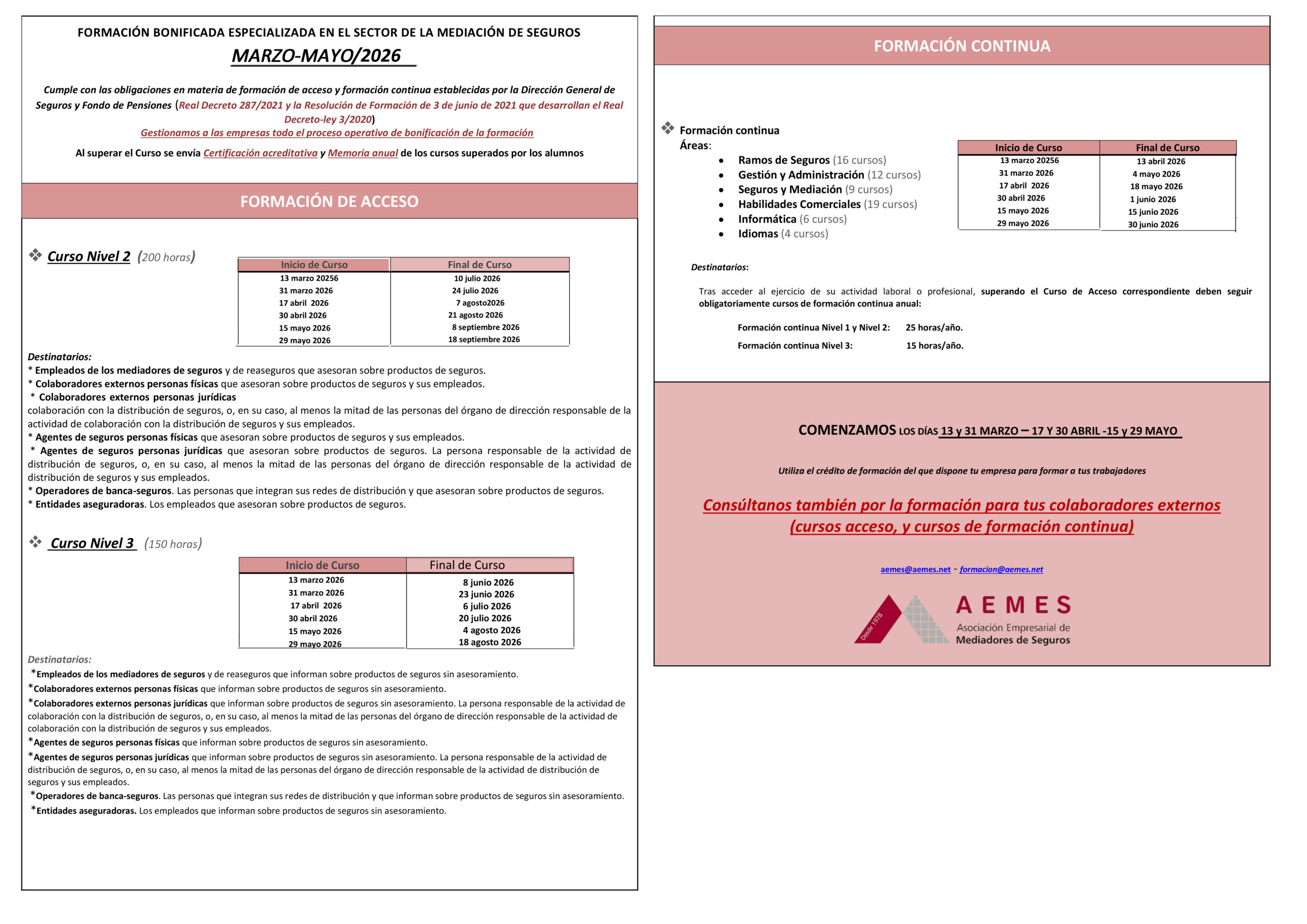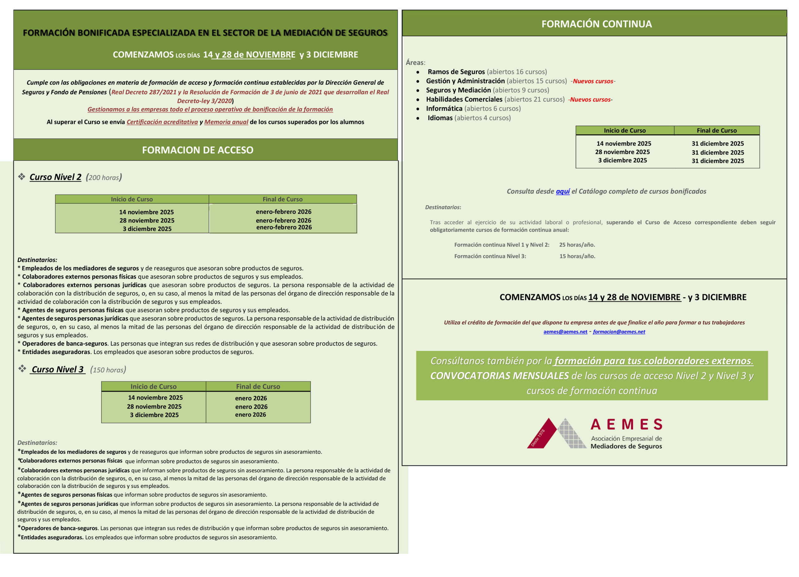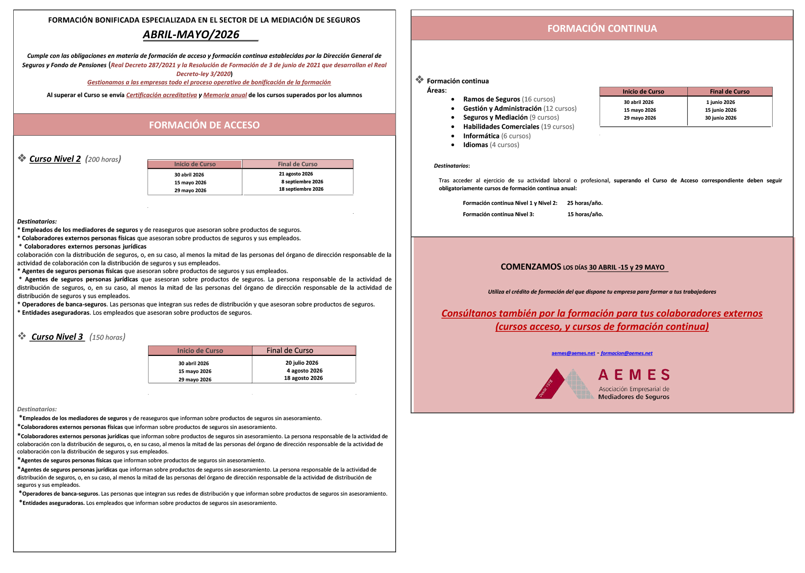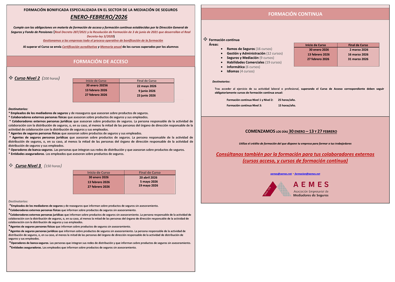 Desde AEMES, patronal del sector de la mediación de seguros, queremos animaros a utilizar el crédito de formación anual del que dispone tu empresa para formar a tus trabajadores a través de la bonificación de la Fundación Tripartita.
